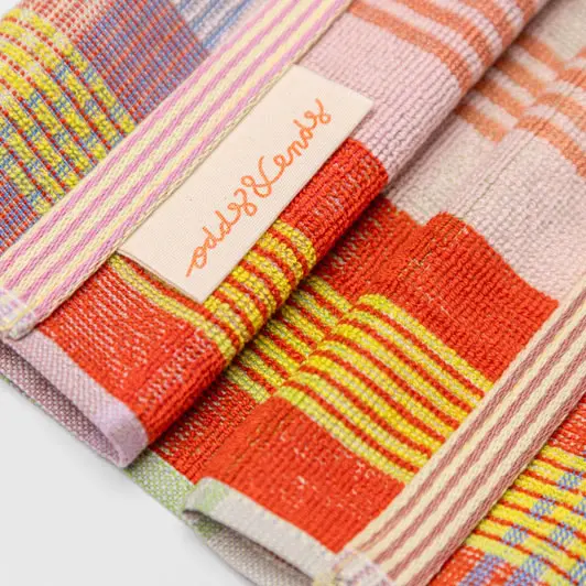 When factories dye yarns to weave textiles, they make some extra—just in case—but they often go unused. The Odds & Ends textiles are designed to get the most out of these remainders, creating unexpected color combinations.