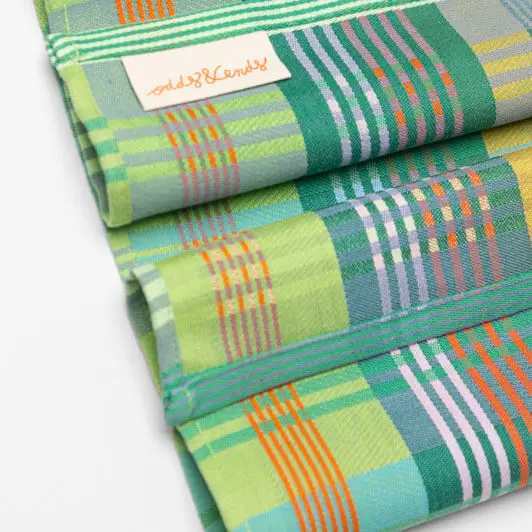 When factories dye yarns to weave textiles, they make some extra—just in case—but they often go unused. The Odds & Ends textiles are designed to get the most out of these remainders, creating unexpected color combinations.